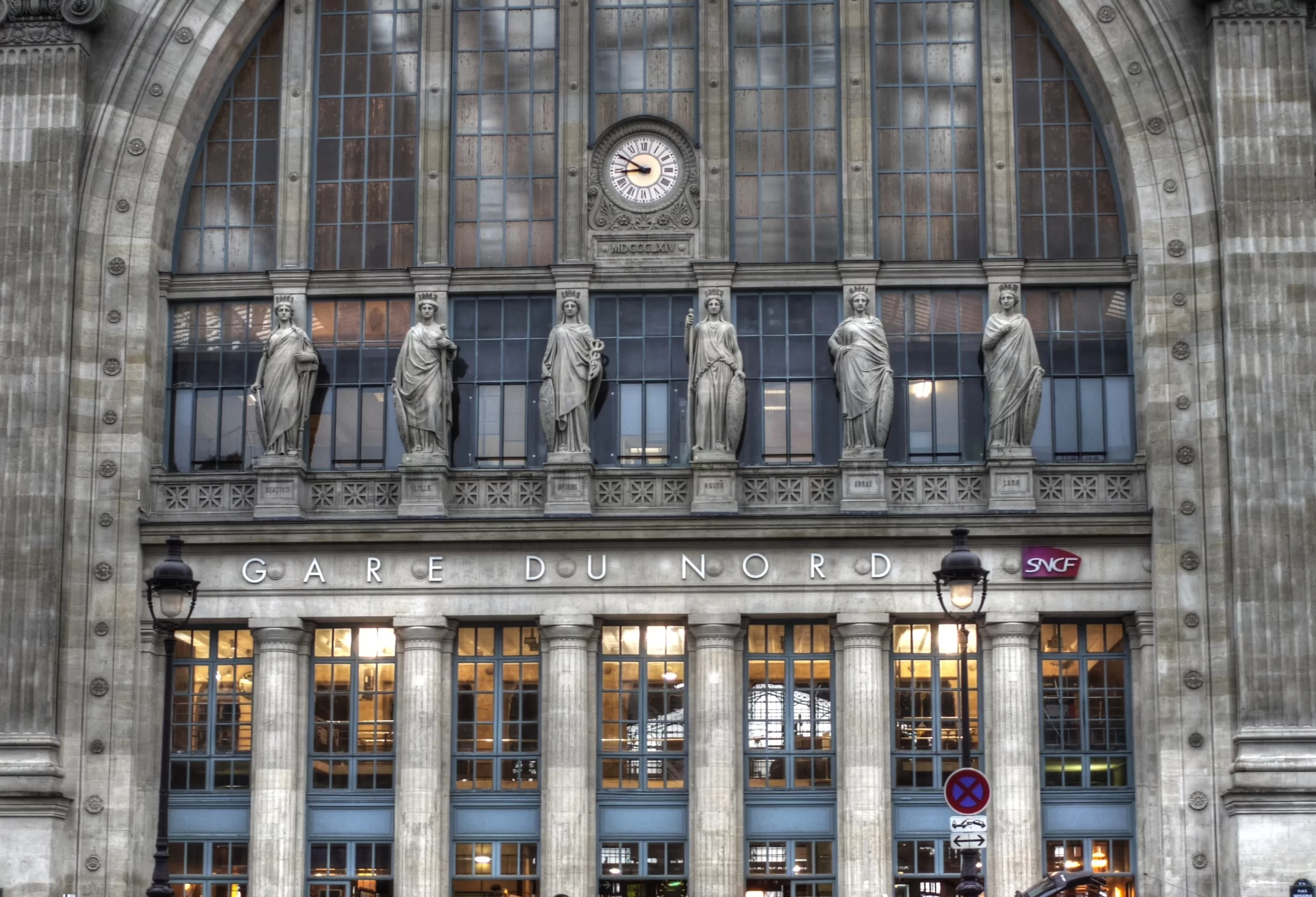 Der Gare du Nord ist der wichtigste Verkehrsknotenpunkt Frankreichs, der größte Bahnhof Europas und ein imposantes architektonisches Denkmal, das auch dann sehenswert ist, wenn man nirgendwo hin will. Der Umriss des Gebäudes erinnert an den Arc de Triomphe. Auf dem Gesims befinden sich Skulpturen. Jede von ihnen symbolisiert eine Stadt, die man von hier aus mit dem Zug erreichen kann.