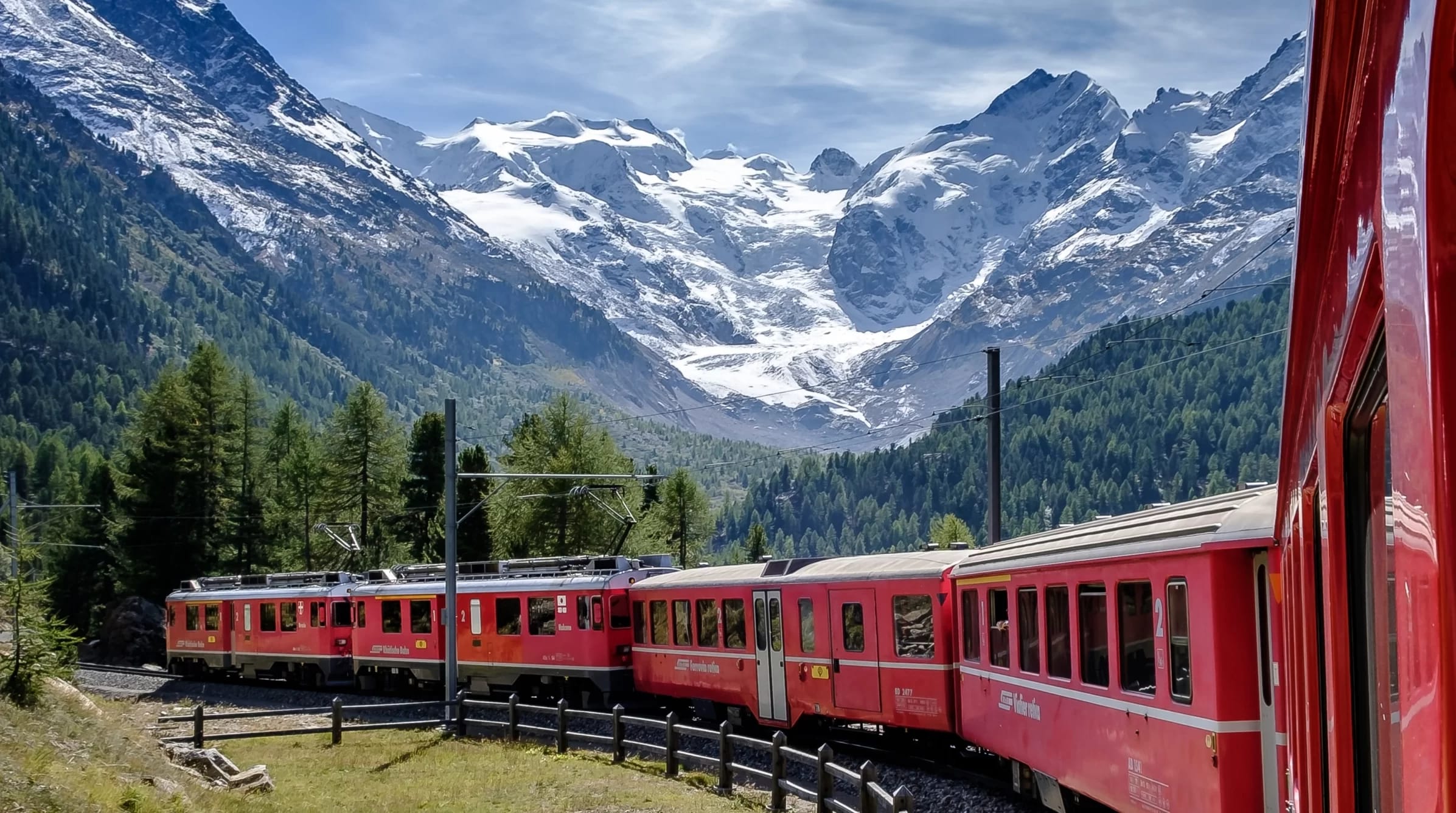 Der Streckenabschnitt „St. Moritz – Chur“ verläuft entlang der ältesten Bahnlinie der Schweiz, der Rhätischen Bahn (RhB), die seit dem vorletzten Jahrhundert in Betrieb ist. Einen Teil dieser Strecke, den Albula, haben Sie bereits mit dem Glacier-Express befahren, nun ist es an der Zeit, den ebenso berühmten Bernina-Express zu erleben. Die riesigen Panoramafenster und die Kommentare der Audioguides sind natürlich beeindruckend, aber Sie müssen für die Buchung eines Sitzplatzes im Express extra bezahlen, obwohl der SwissPass verfügbar ist. Wenn Sie Geld sparen wollen, können Sie die gleiche Strecke mit einem normalen Interregio-Zug zurücklegen, zumal die Bernina-Express-Wagen im Winter als Anhänger fungieren.